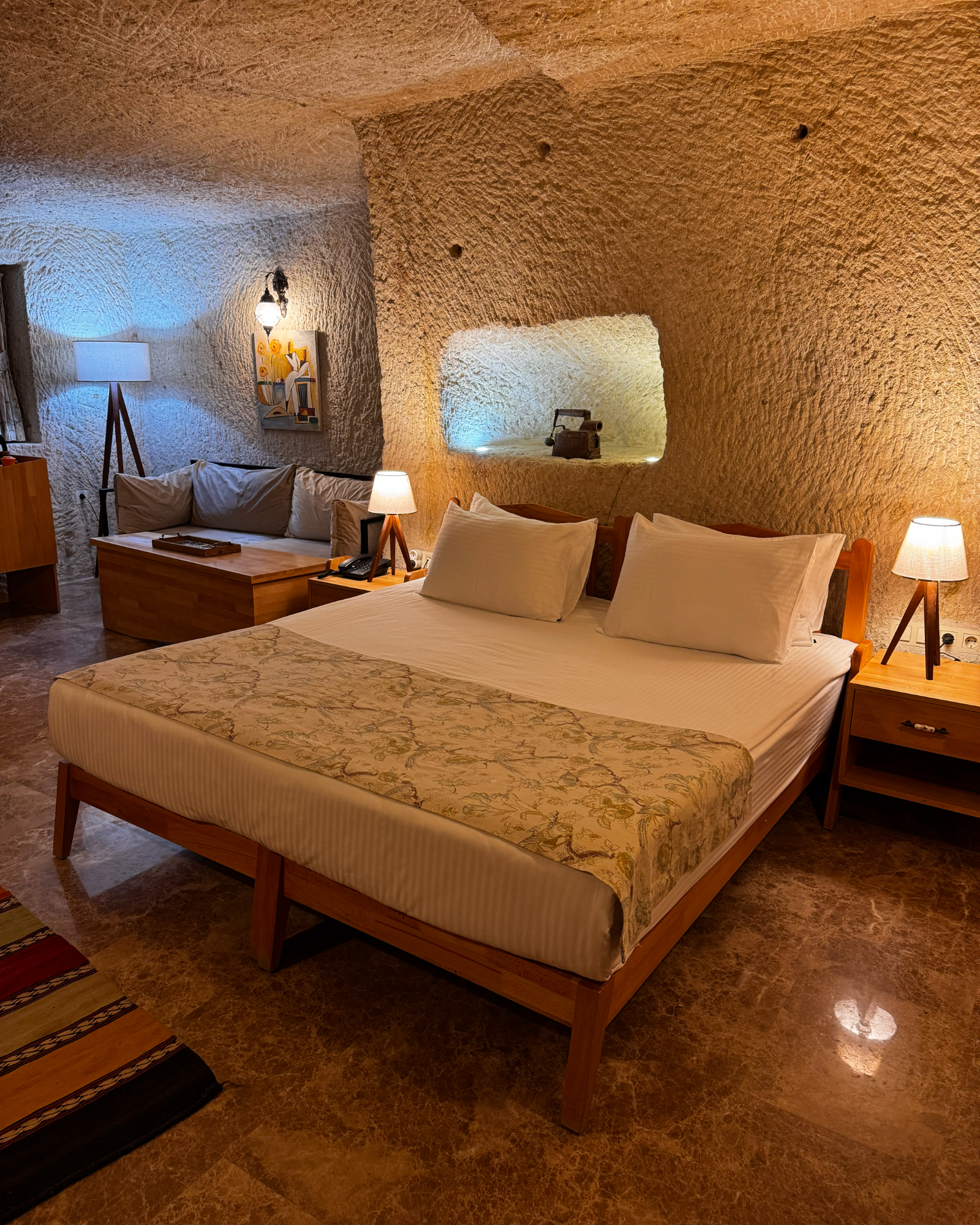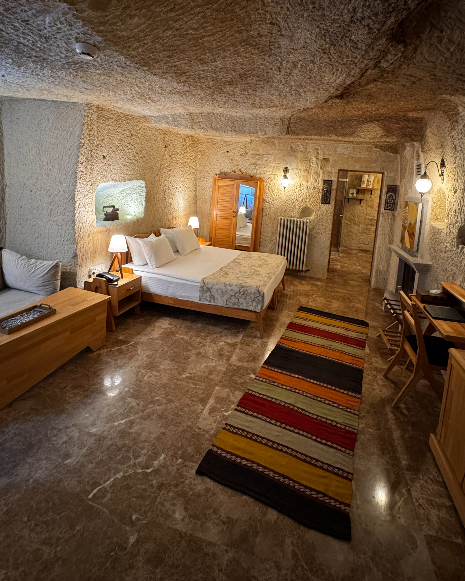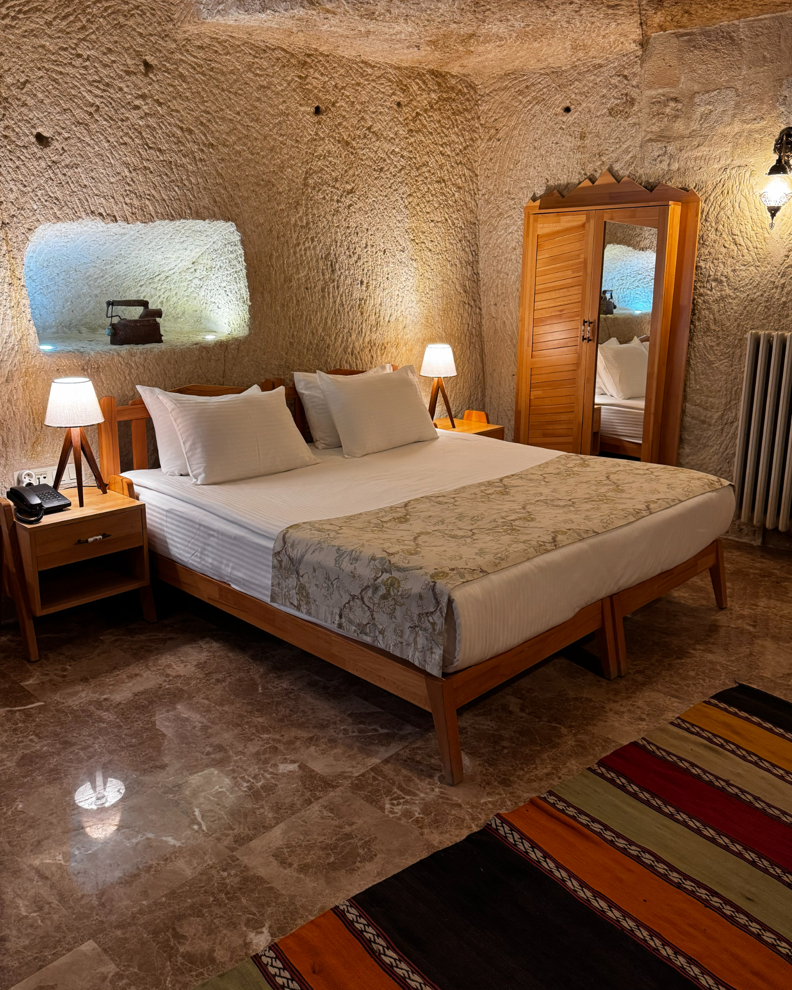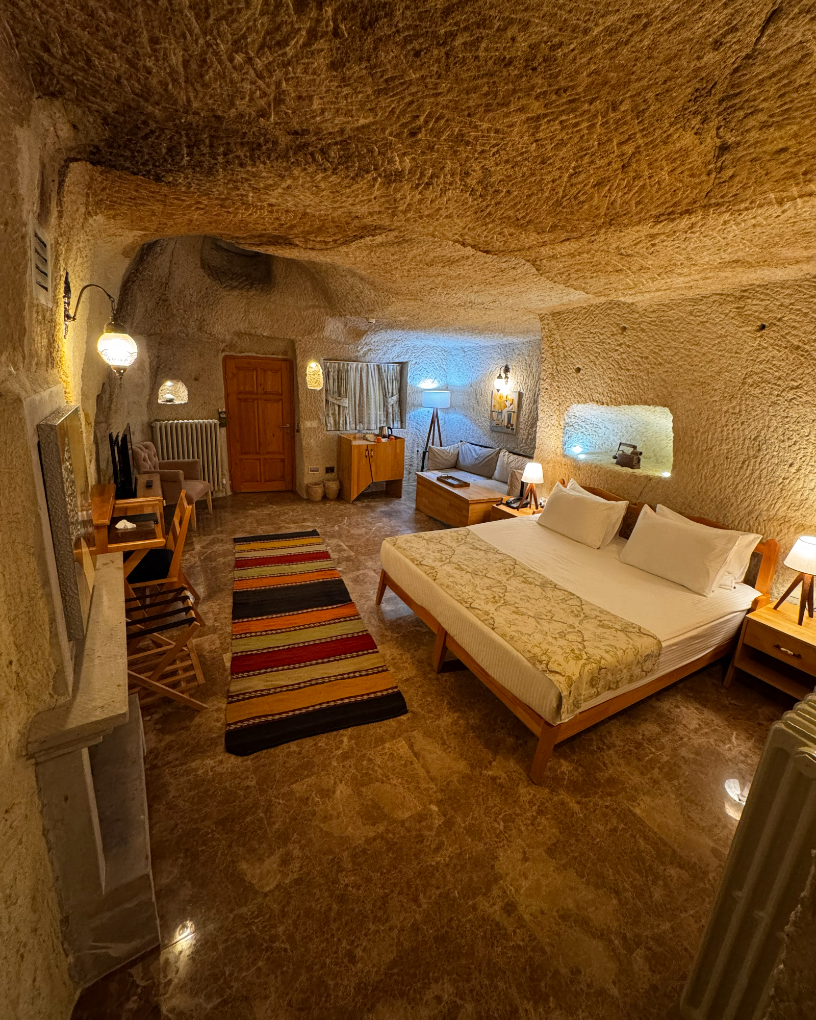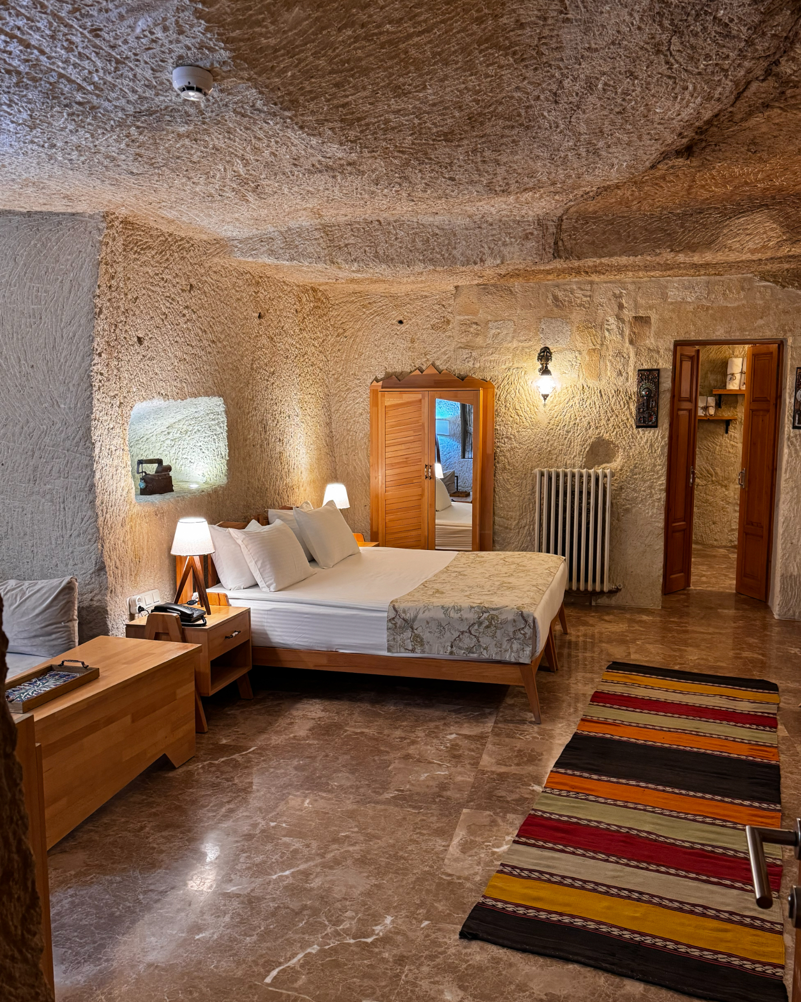 Blending natural cave textures with modern comfort, the Deluxe Cave Room brings the Cappadocia fairytale to your stay with its fireplace, spacious layout, and stunning castle view.