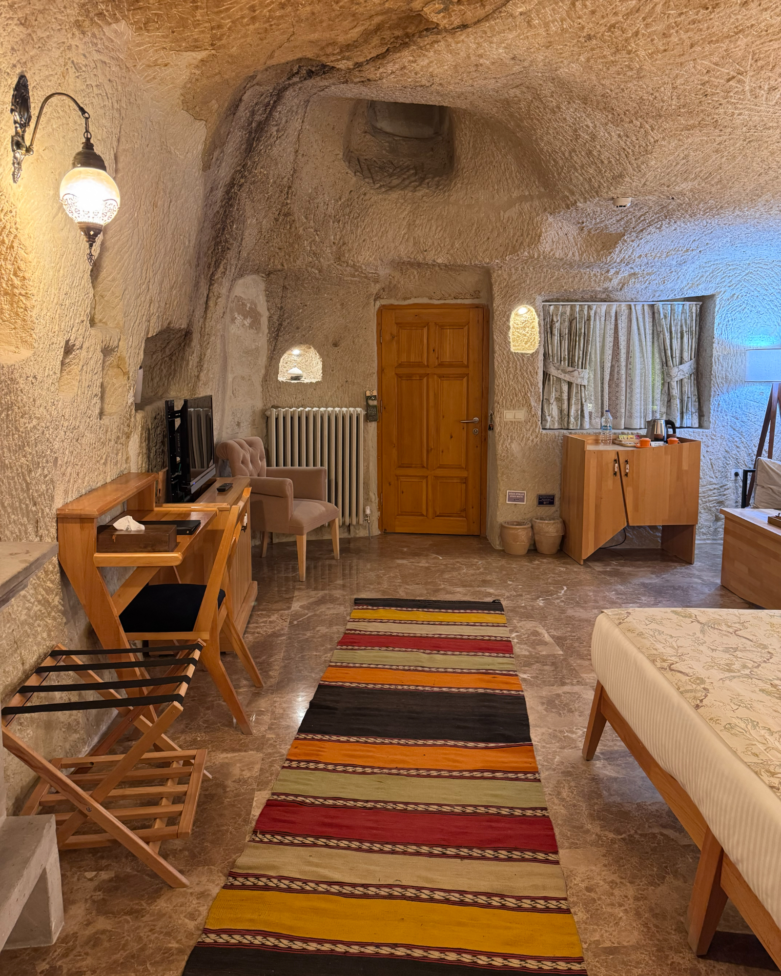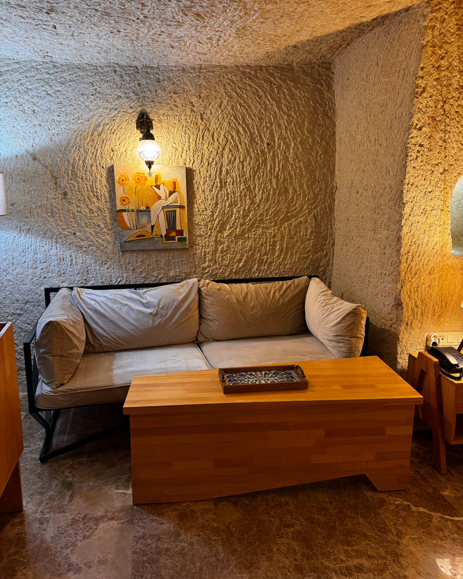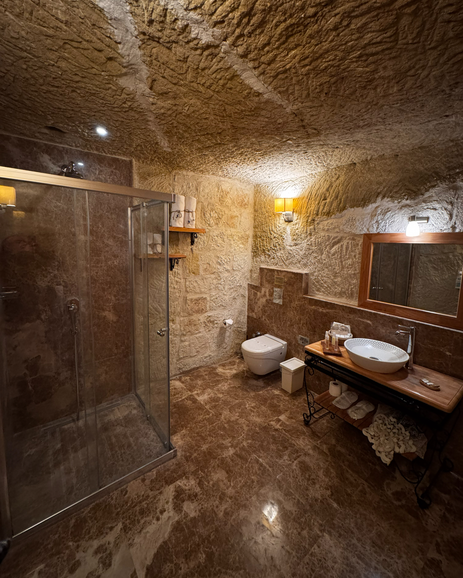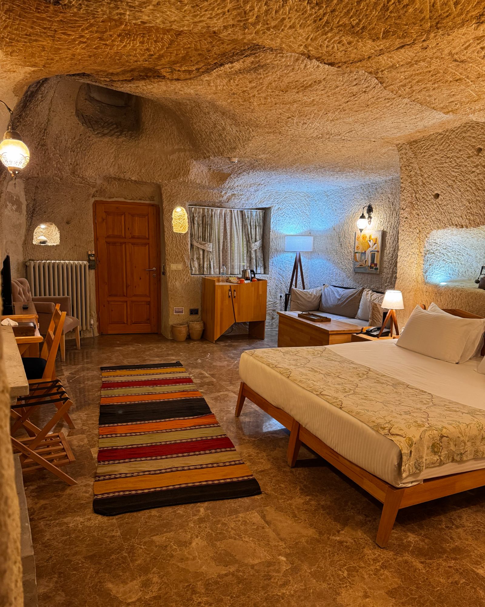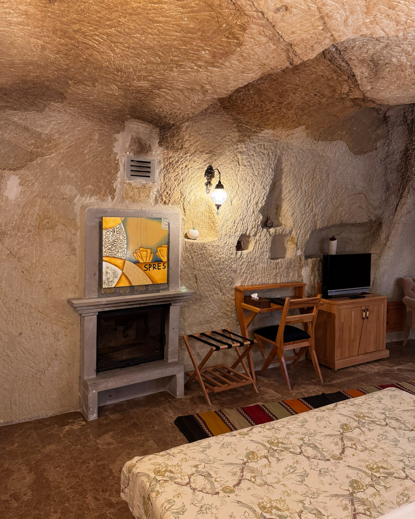 Blending natural cave textures with modern comfort, the Deluxe Cave Room brings the Cappadocia fairytale to your stay with its fireplace, spacious layout, and stunning castle view.