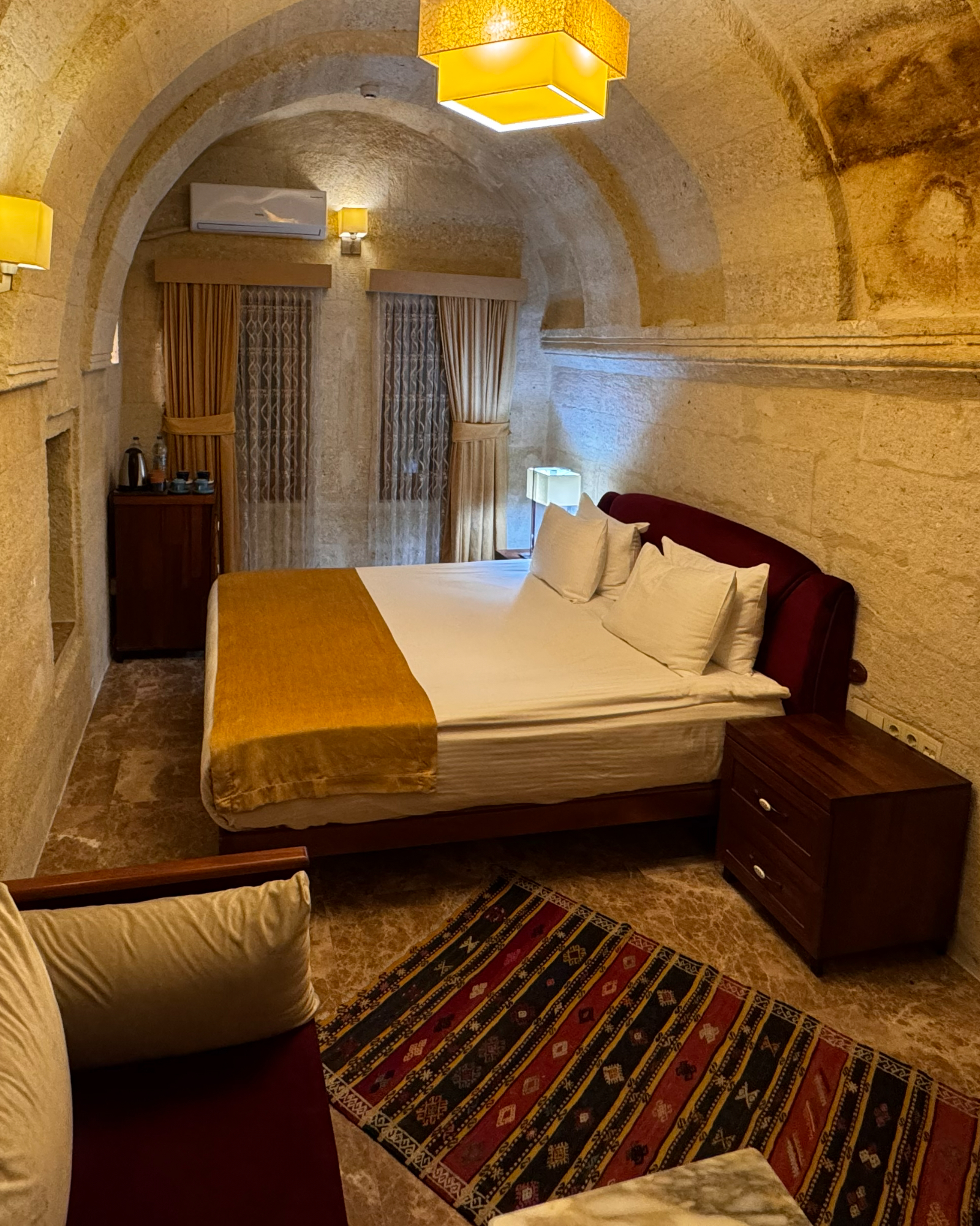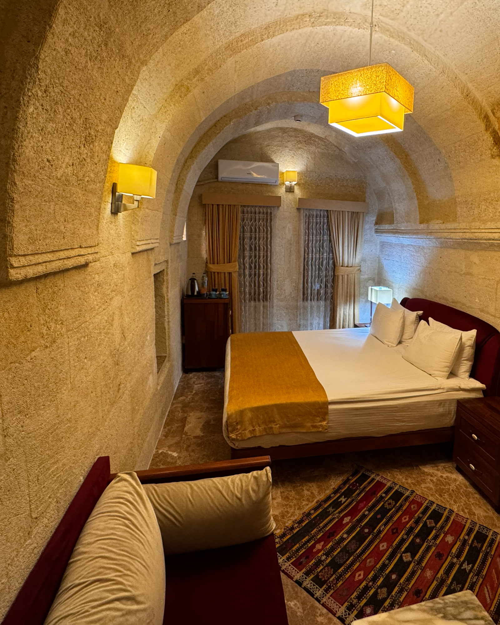 The Family Room offers a cozy and comfortable stay for families in Cappadocia, with stunning views of Çavuşin Castle and modern amenities for an unforgettable experience.