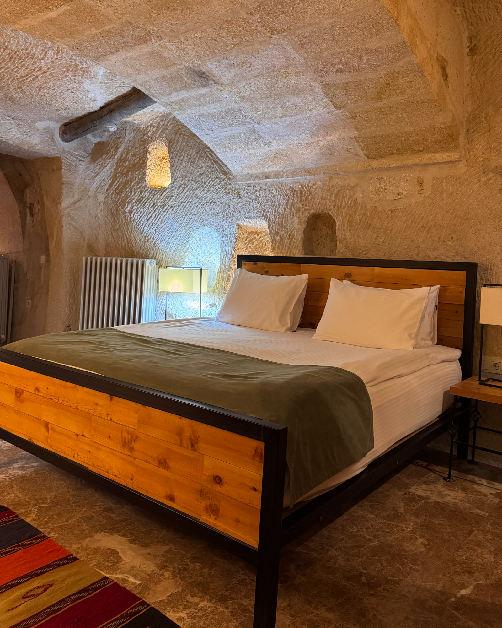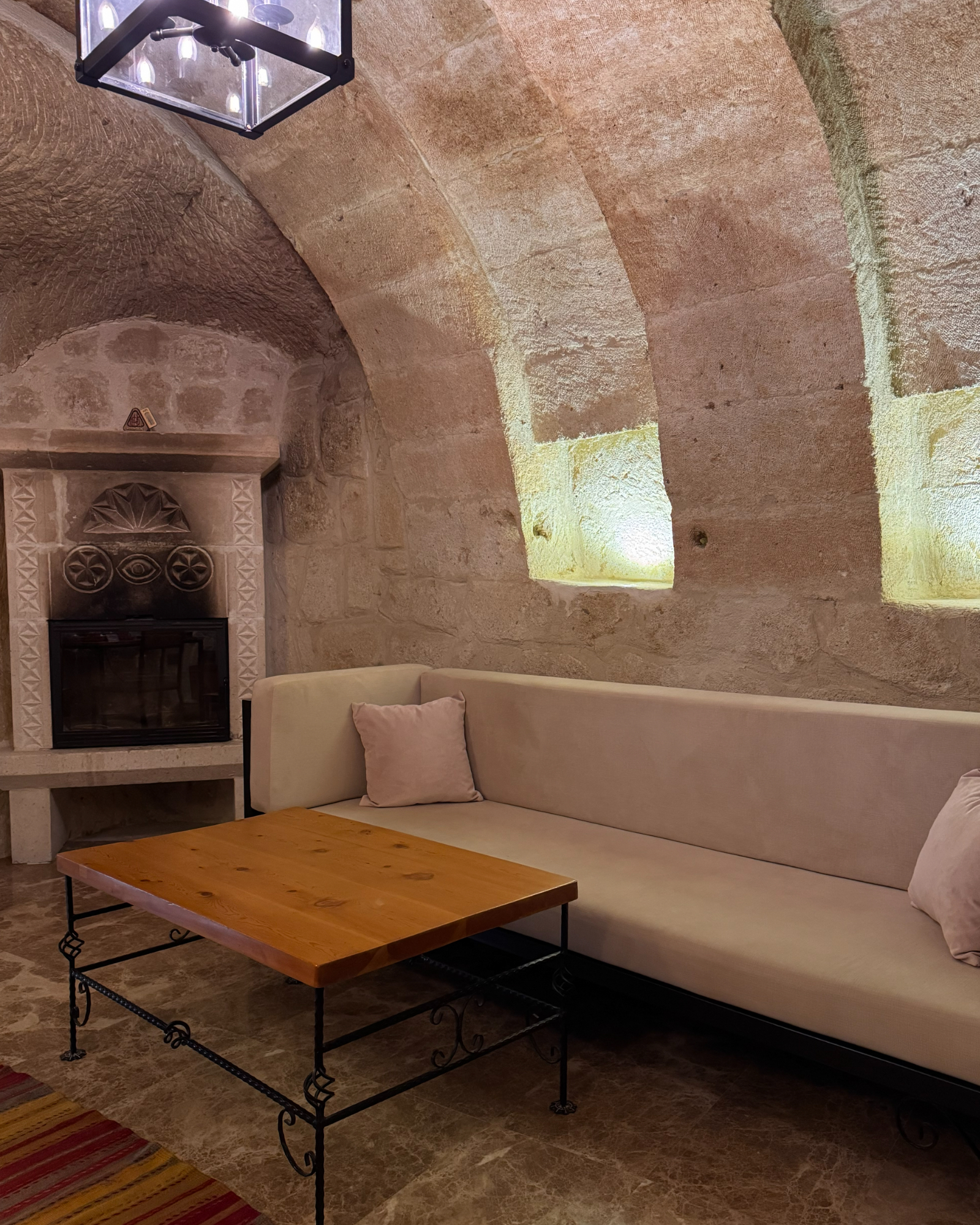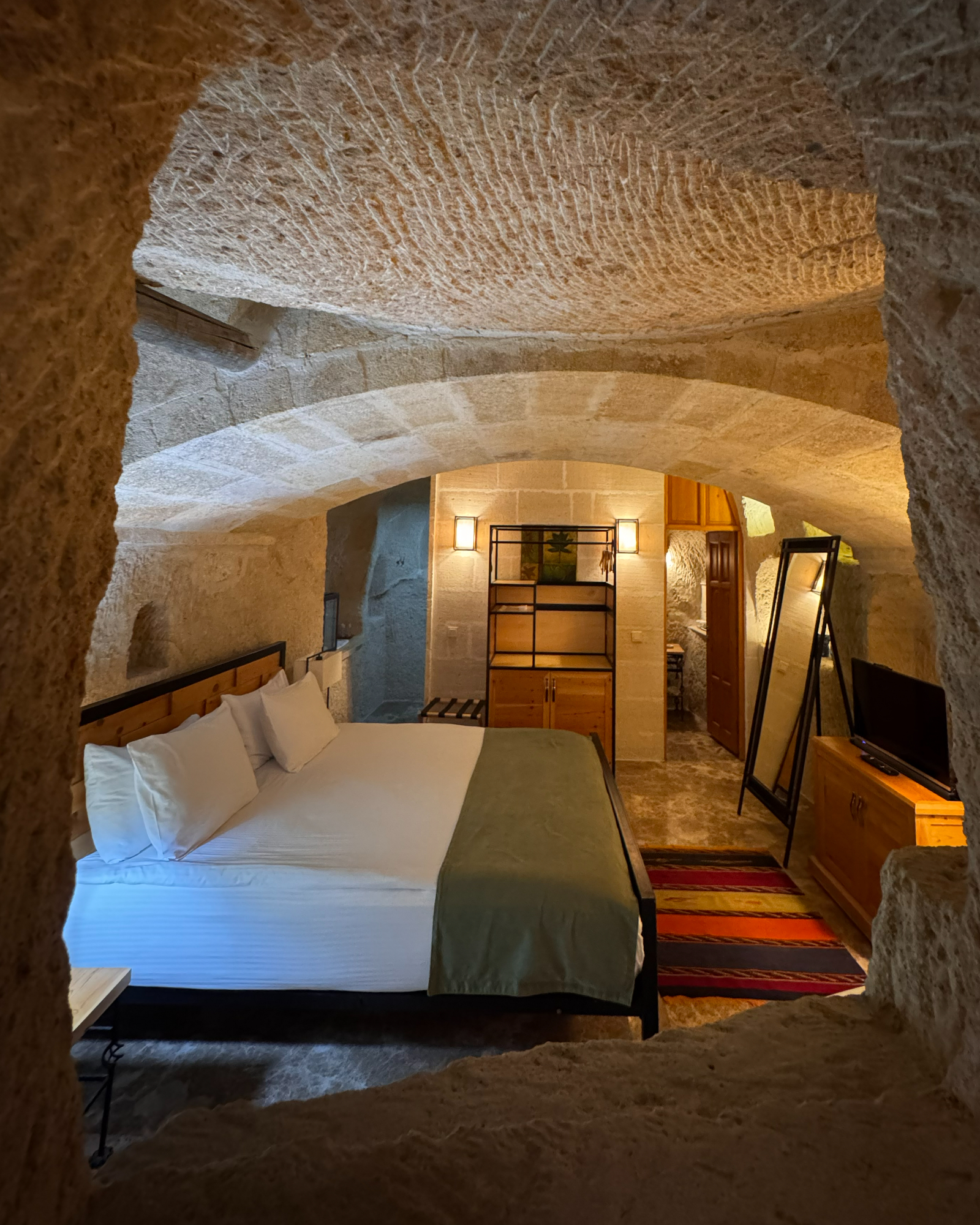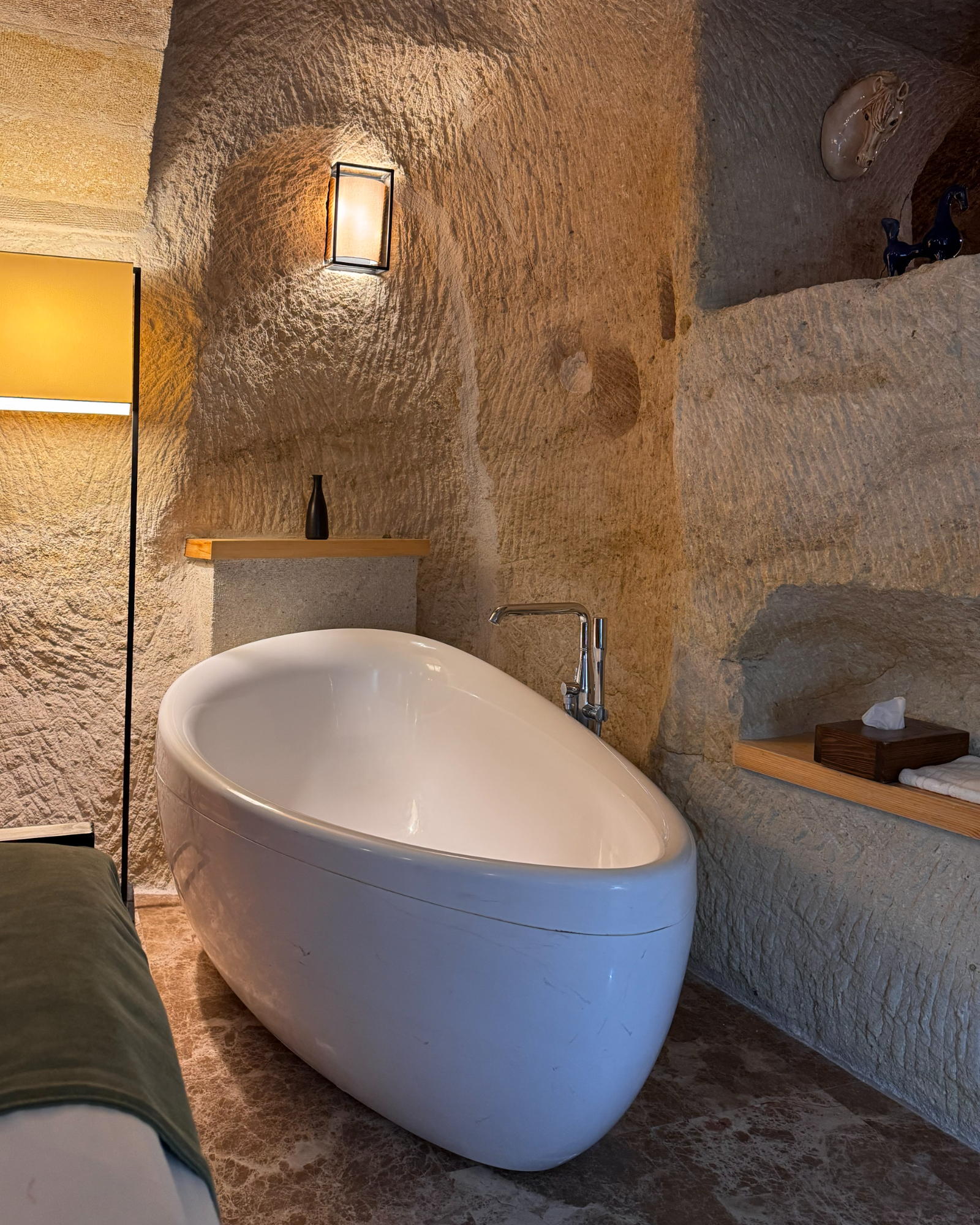 The Superior Cave Suite offers a luxurious and comfortable cave suite experience in Cappadocia, featuring a drop-shaped bathtub, fireplace, and views of Çavuşin Castle.