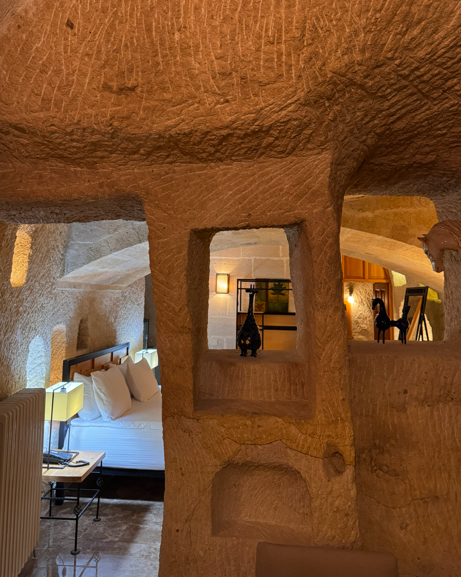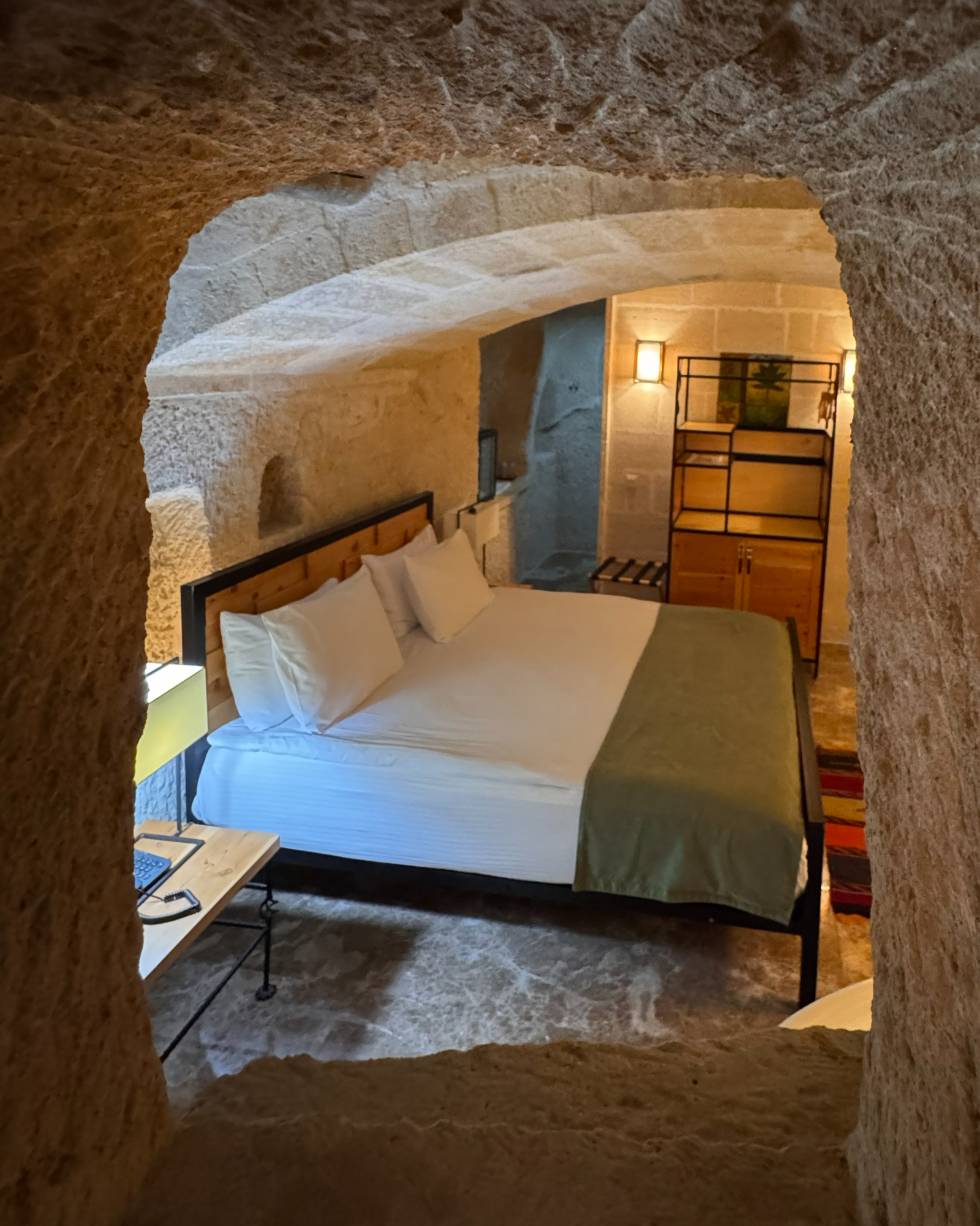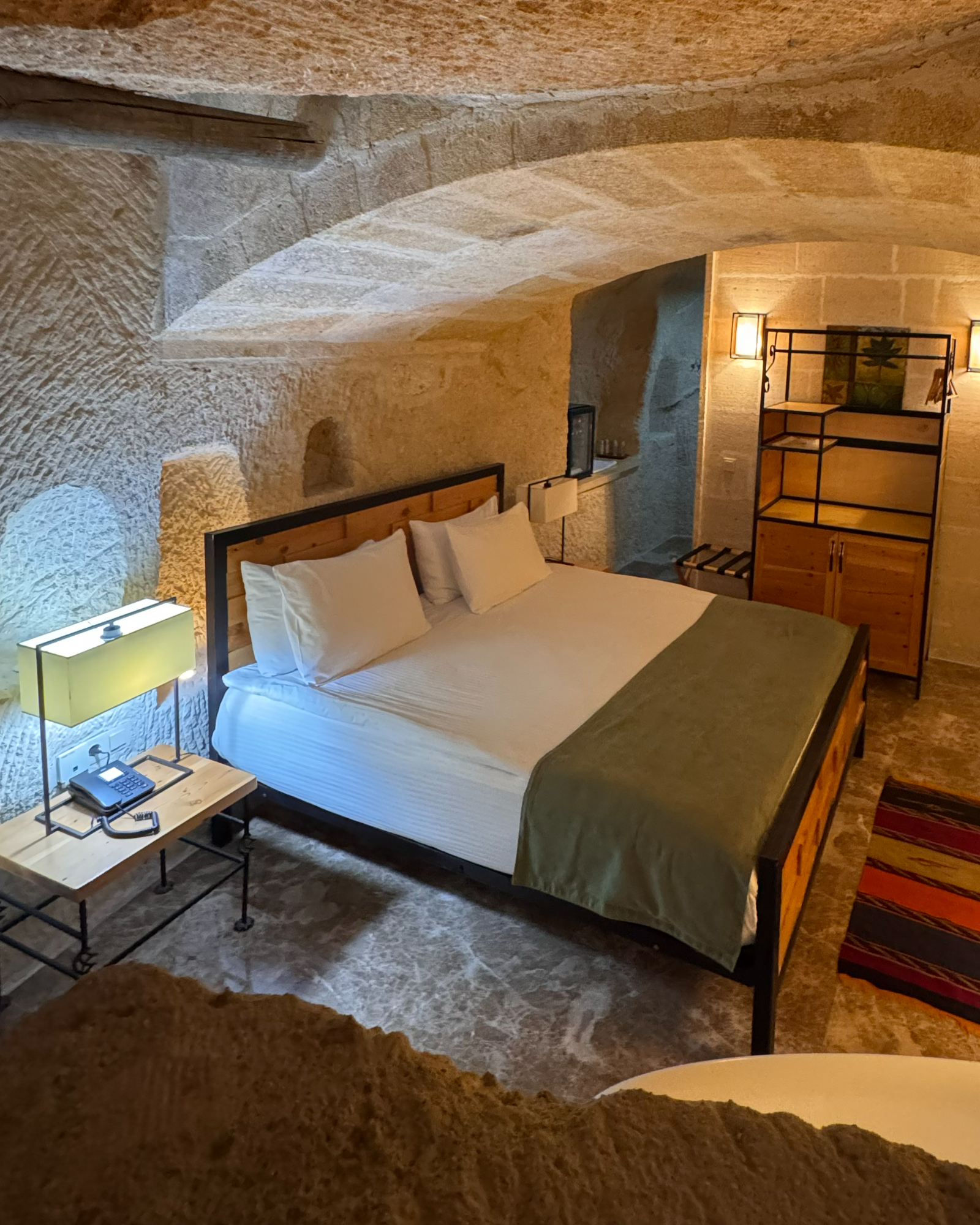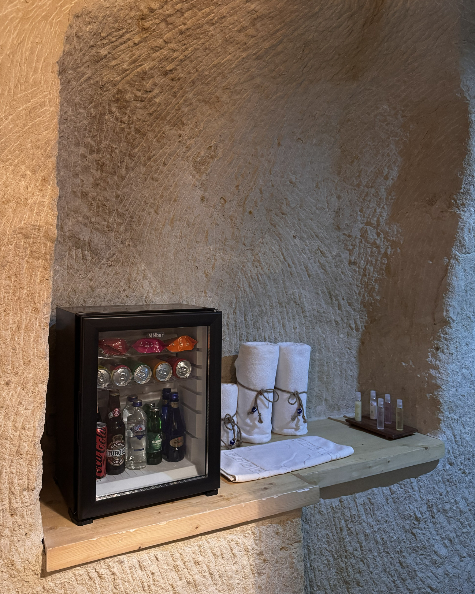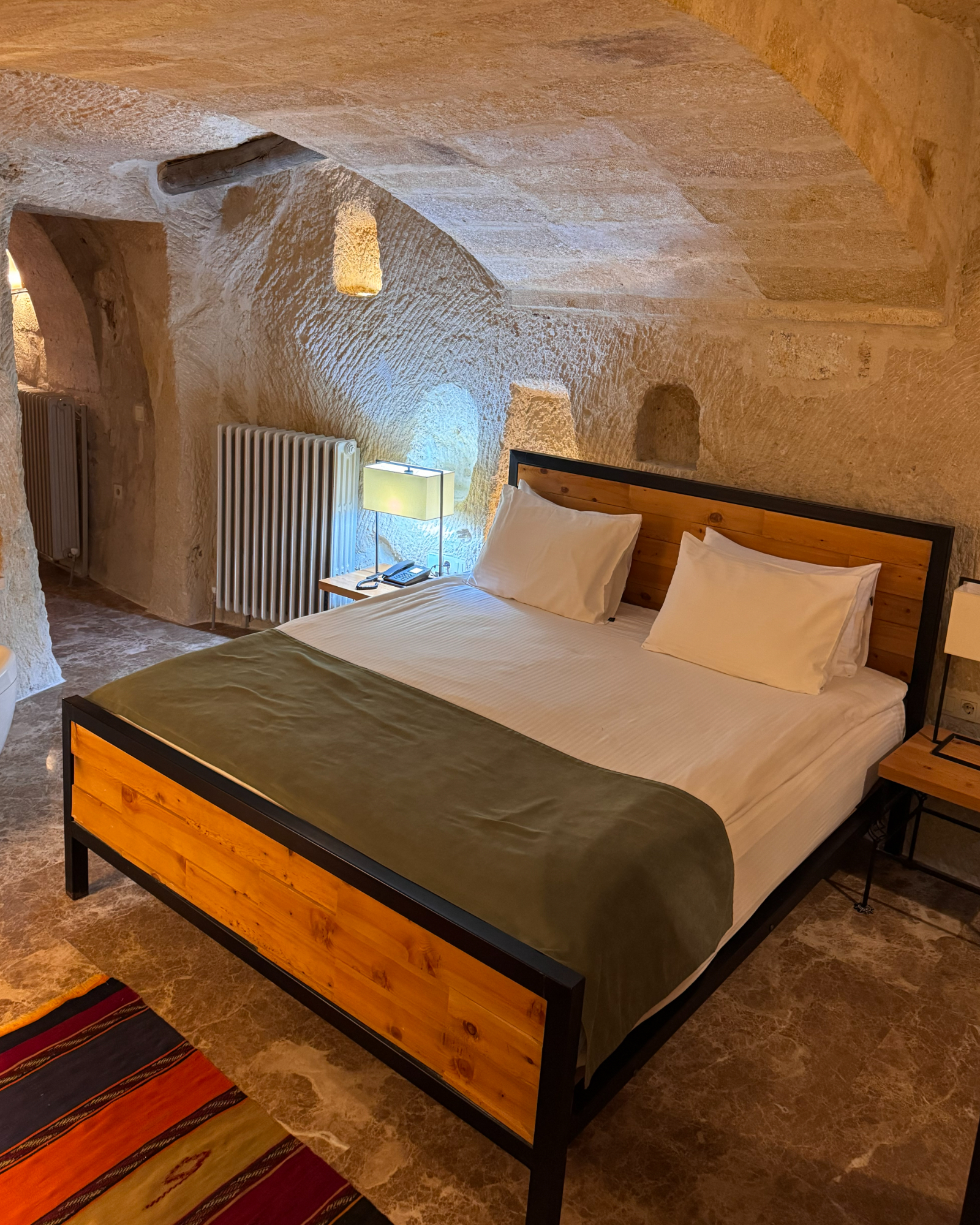 The Superior Cave Suite offers a luxurious and comfortable cave suite experience in Cappadocia, featuring a drop-shaped bathtub, fireplace, and views of Çavuşin Castle.