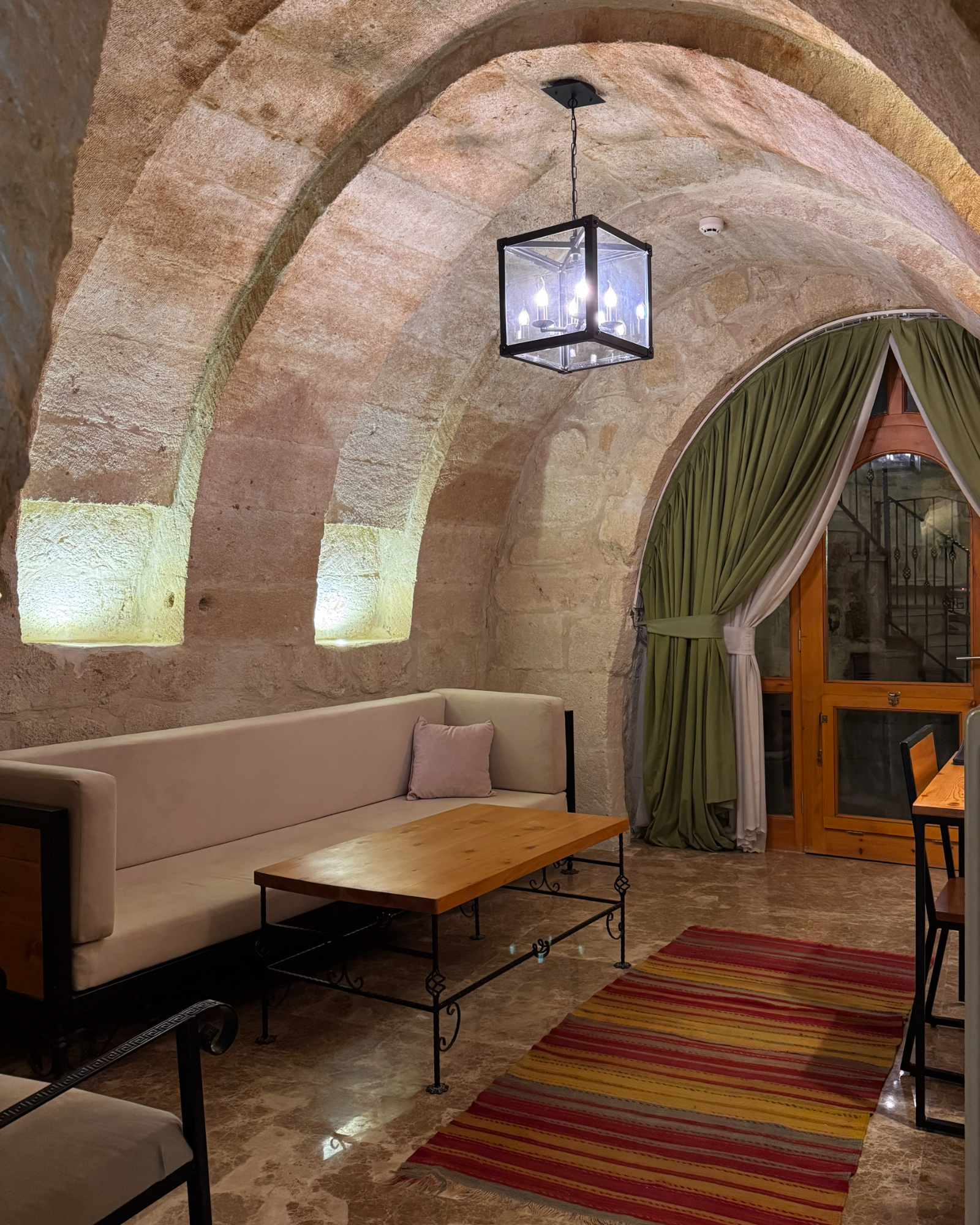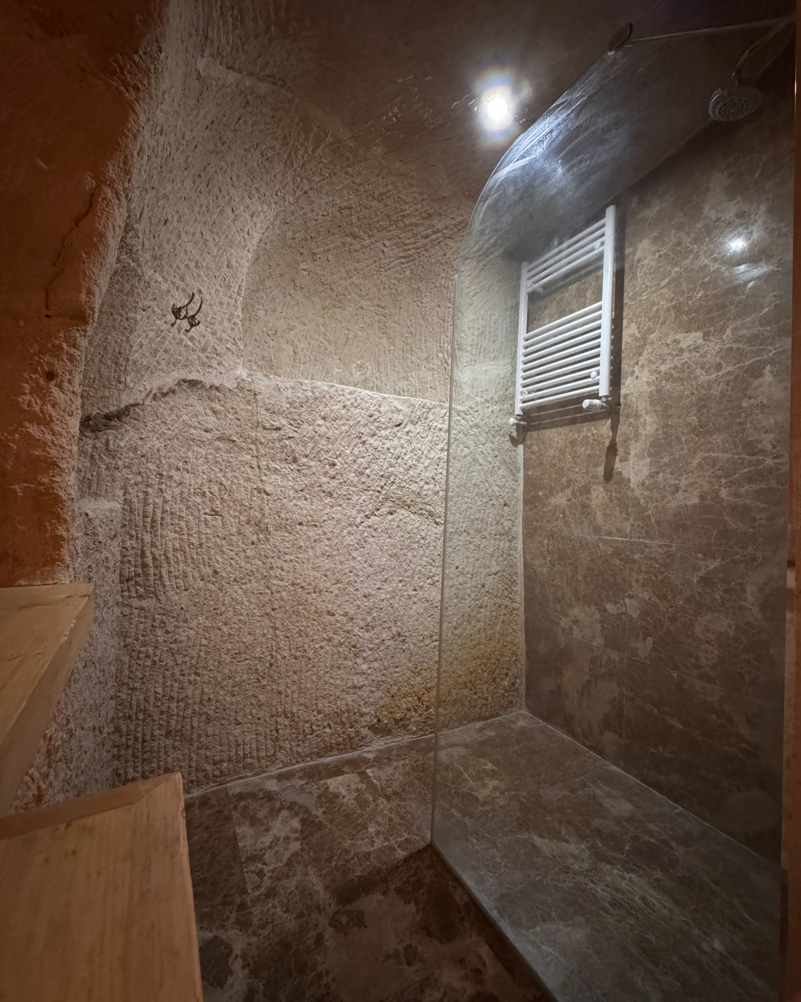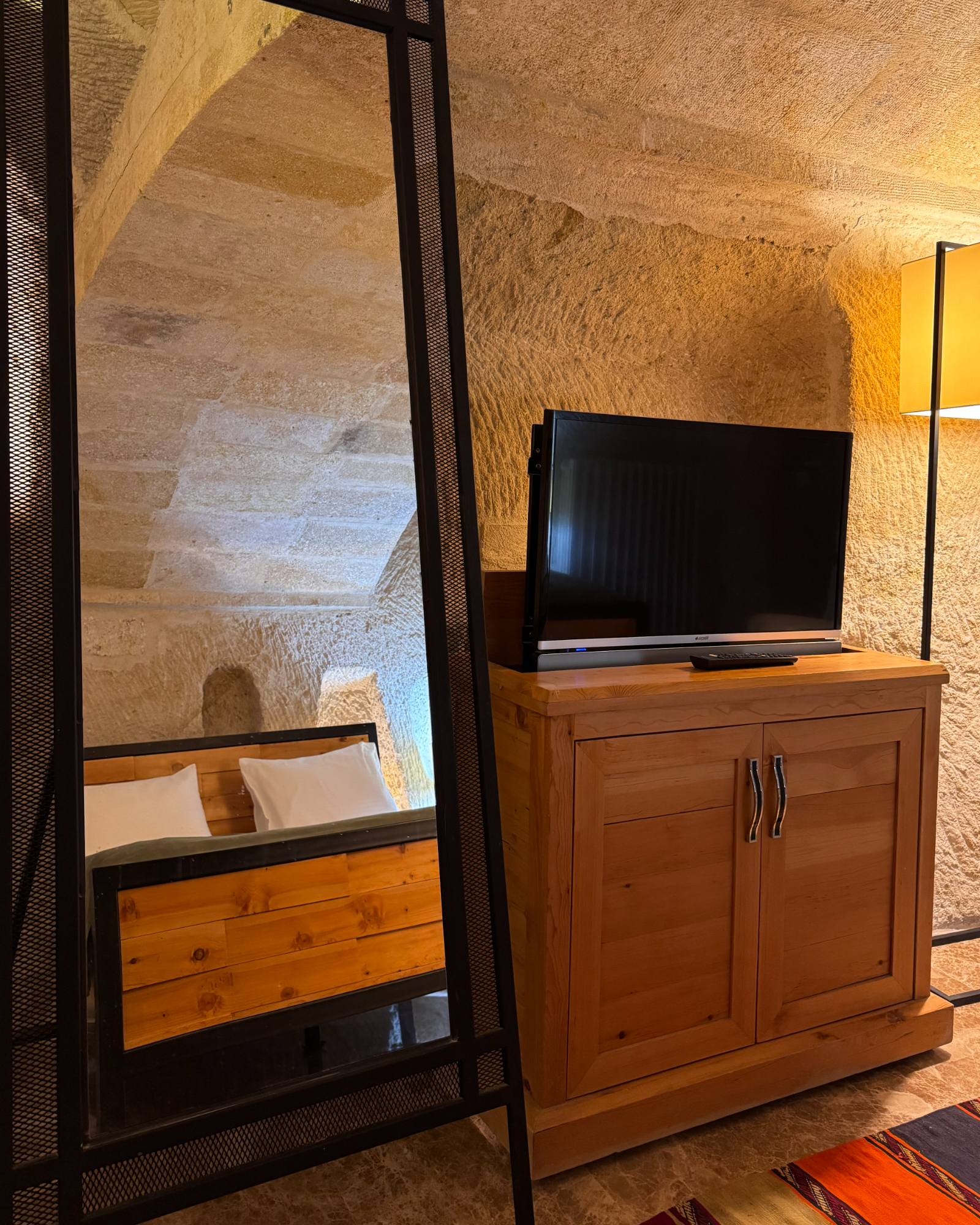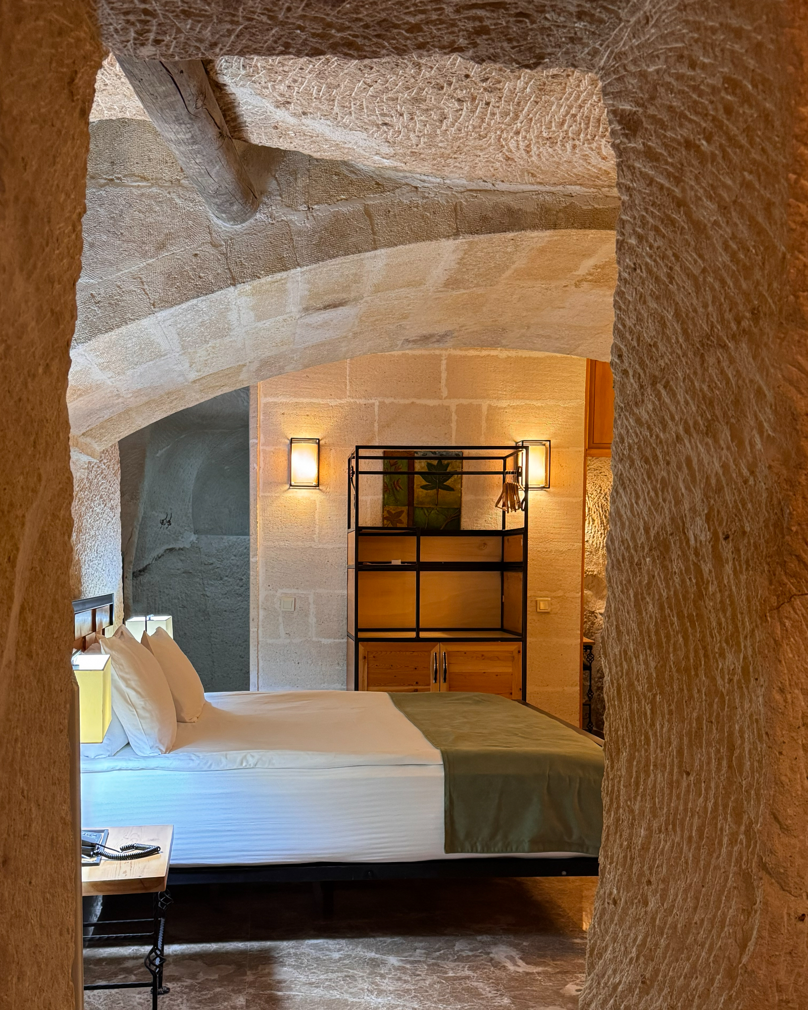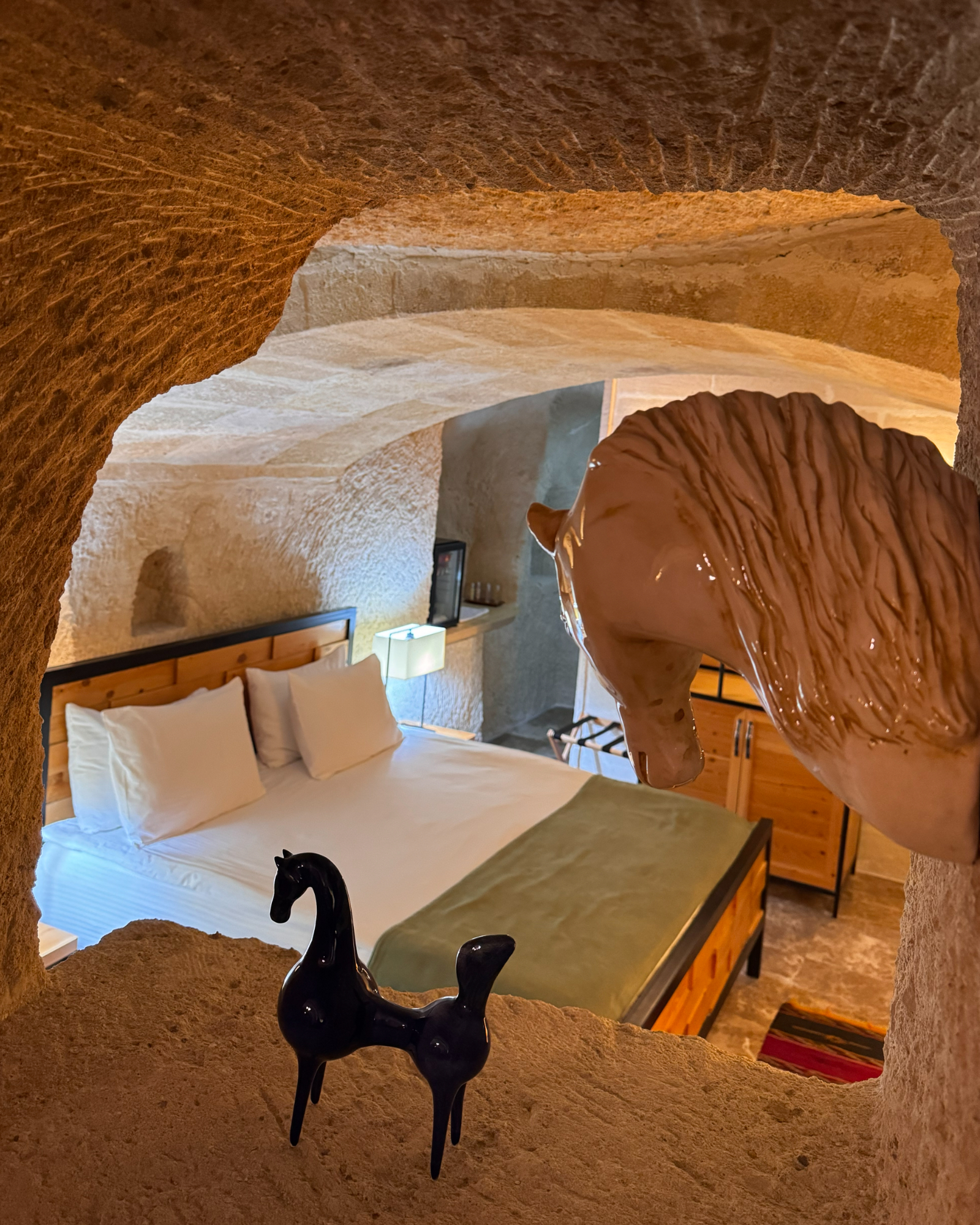 The Superior Cave Suite offers a luxurious and comfortable cave suite experience in Cappadocia, featuring a drop-shaped bathtub, fireplace, and views of Çavuşin Castle.